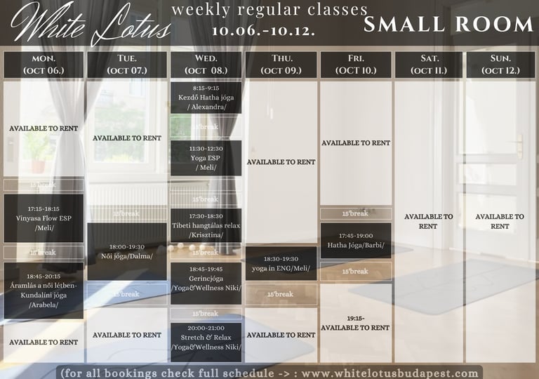 (Állandó recepció nincs, beengedés és regisztráció az oktató által 15 perccel órakezdés előtt)